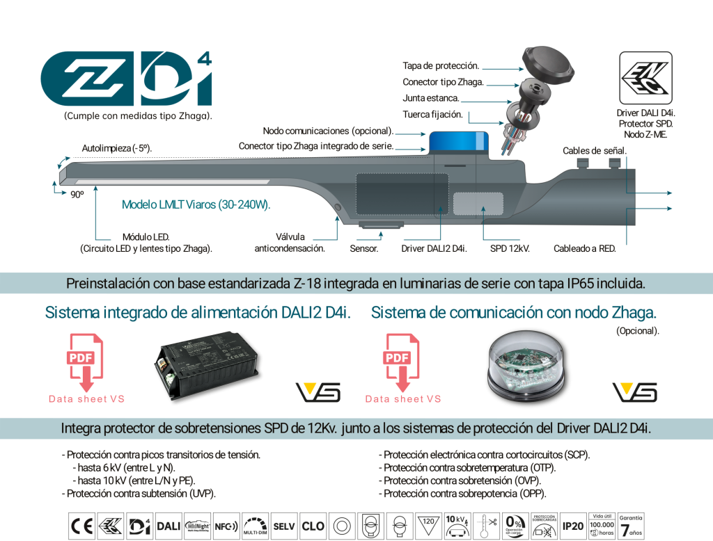 funciones con opción de conexión a Nodo tipo Zhaga para gestión remota de las luminarias.