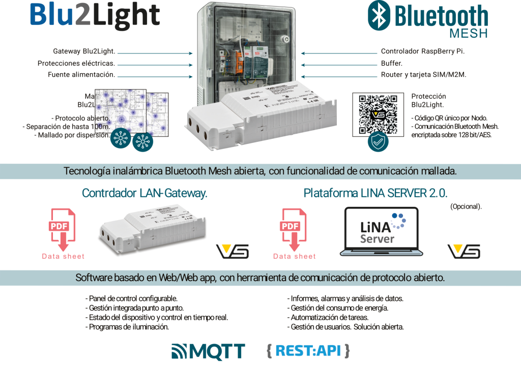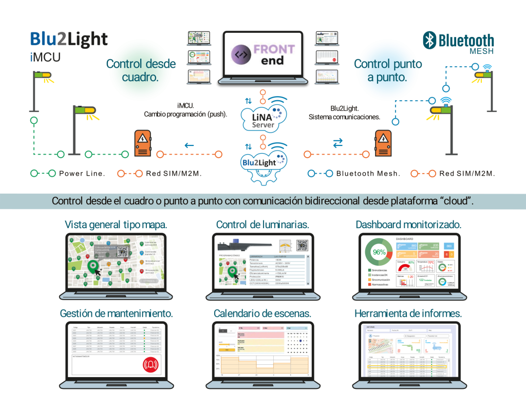 Sistema de protocolo abierto Blu2Light, para Telegestión desde plataforma centralizada LINA